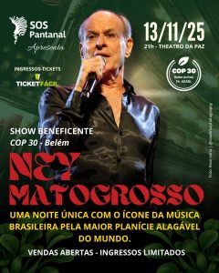 During COP30, which takes place in Belém, Brazil, two great icons of Brazilian music—Ney Matogrosso and Lenine—are joining an initiative to benefit the Pantanal’s biome, the largest tropical floodplain in the world. Both artists will perform these benefit concerts at the historic Theatro da Paz.